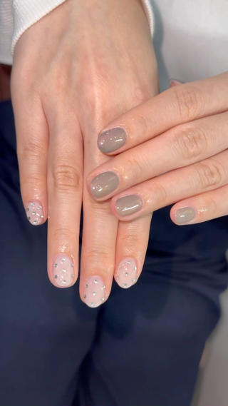 - ちゅるんネイル、ワンホンネイル、韓国風ネイル、ニュアンスネイル、シンプルネイル、ネイルデザイン提案、長さだし、手描きネイル、持ち込みデザイン